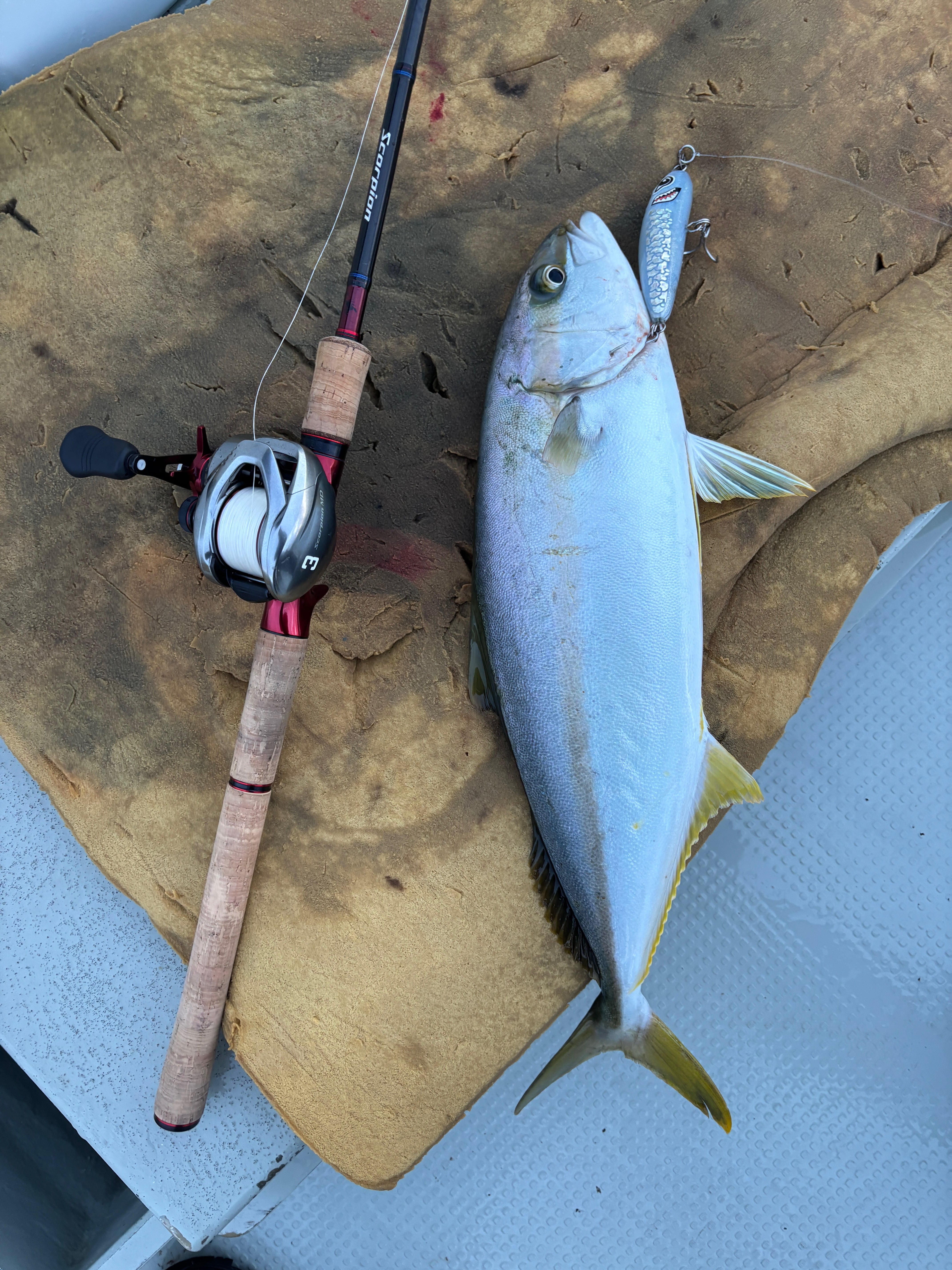 ルアーの重さは35g(個体ごとに誤差があります)で、同サイズのルアーと比べると少し重めになっています。PE1.5号〜3号と組み合わせるロッドとリーダーを使ってください。フックの推奨サイズはST-66 1で、リングは#6です。(フックとリングは付属しません)